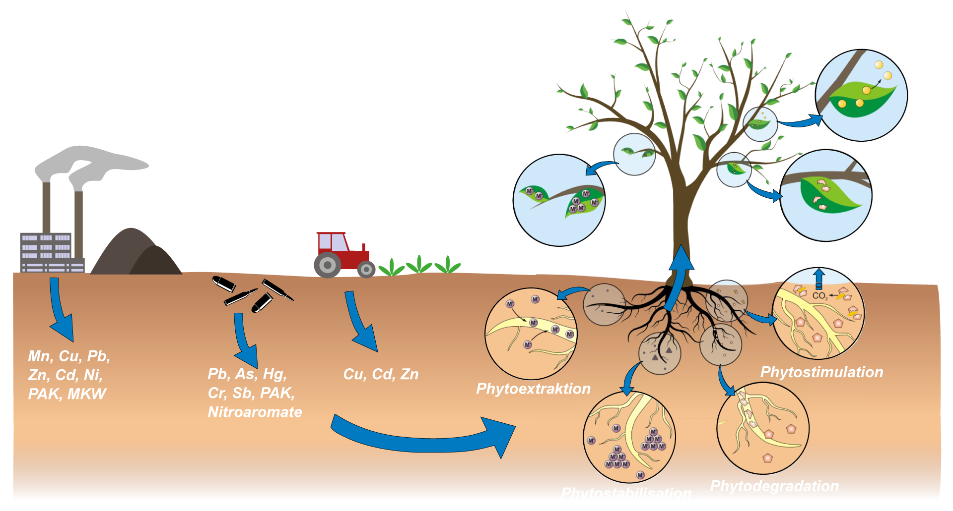 Die Sanierung von belasteten Böden ist meist kostenintensiv, aufwendig und kann den Boden, sowie die Lebewesen darin beeinträchtigen. Phytoremediation ist eine in-situ-Alternative zu technischen Verfahren, welche ausgewählte, an den Standort angepasste Pflanzen und damit verbundene Pilze und Bakterien im Boden, um den Gehalt oder die toxischen Wirkungen von Schadstoffen in der Umwelt über mehrere Vegetationsperioden effektiv zu reduzieren.